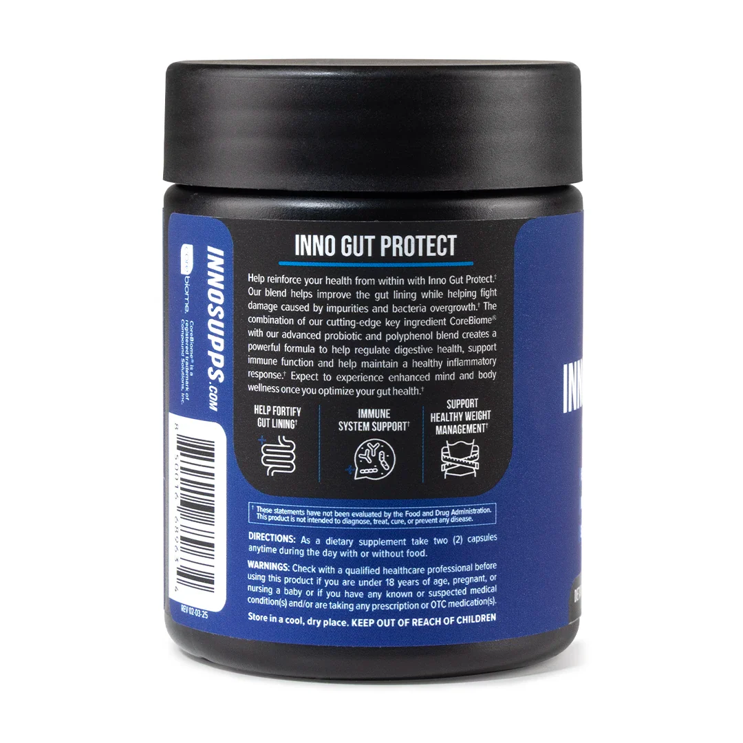 Inno Gut Protect is a postbiotic and works to repair and strengthen the gut lining. A fortified gut lining helps maintain the benefits you experience from pre- and probiotics. Research also suggests postbiotics may help boost your immune system, regulate inflammation, and support weight loss and maintenance.